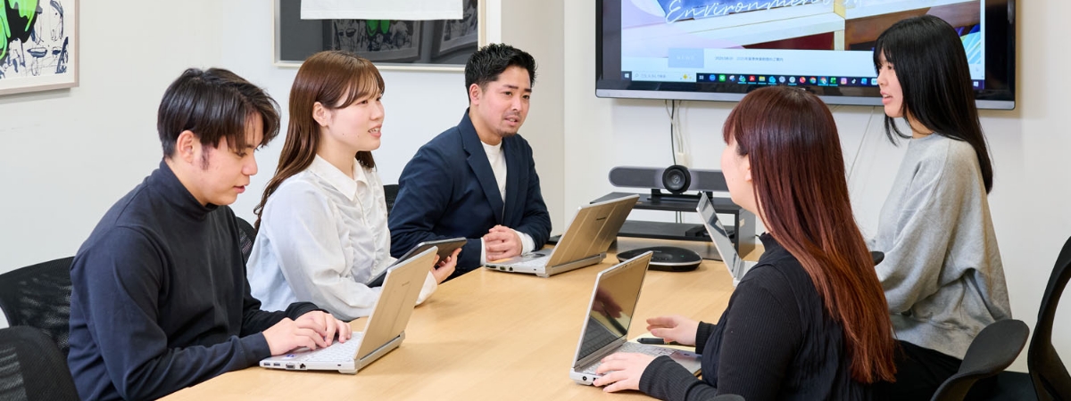 営業社員であっても、最初の1年間は撮影現場の立会い、広告物のチェックなど、業務全般のアシスタント的な業務からスタート。トータルの対応力、思考力が養われ、プロデューサー的な感覚を早く身につけることができます。